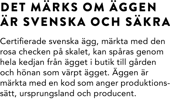 Här hittar du Svenska Äggs inspirationstidning ”Kökets viktigaste råvara”, tips på äggpyssel och fakta om det viktiga jobb som svenska äggbönder gör kring det certifierade ägget. Följ gärna Svenska Ägg på Facebook och Instagram! Du kan även prenumerera på vårt nyhetsbrev via MyNewsdesk.