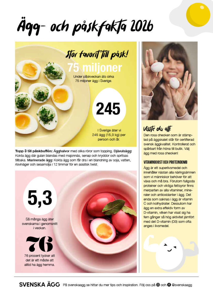 Den här 24-sidiga broschyren innehåller recept, inspiration, fakta och tips med kökets kanske viktigaste råvara, en riktig stjärna som ändå är lite av en doldis: Det svenska ägget.