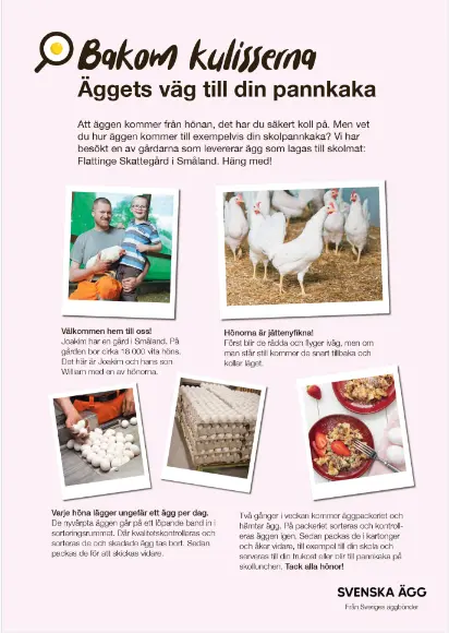 På bondeniskolan.se kan du hitta både filmer, recept, tips och faktaunderlag om ägg, som passar i undervisningen. Sök på ägg så kommer alla förslag upp!